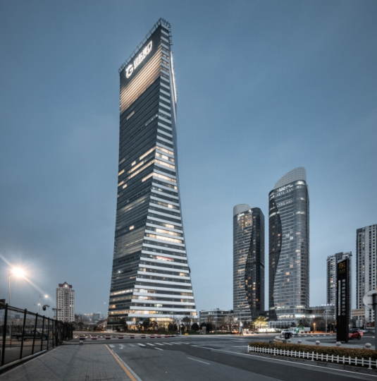 孫紹東長期致力于超高層建筑結(jié)構(gòu)的探索與實(shí)踐,他主持設(shè)計(jì)的204m高山東港口大廈為高度超B級的鋼管混凝土框架-鋼筋混凝土核心筒混合結(jié)構(gòu)。為在幕墻結(jié)構(gòu)構(gòu)件纖細(xì)化的前提下抵抗百年一遇的風(fēng)荷載,實(shí)現(xiàn)頂部六層通高空中大堂,他帶領(lǐng)團(tuán)隊(duì)與德國SBP結(jié)構(gòu)事務(wù)所合作,采用了獨(dú)創(chuàng)的由豎向雙索、單索及水平鋼扁梁構(gòu)成的42m×32m超大索網(wǎng)幕墻體系,呈現(xiàn)出了國內(nèi)首創(chuàng)的高空通透觀景平臺,成為青島的新地標(biāo)。