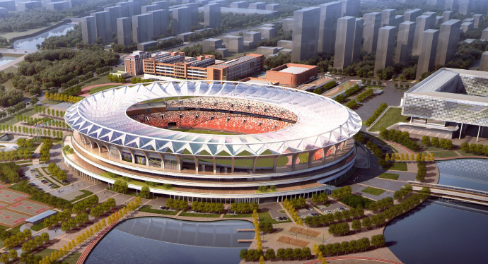 第25屆山東省運(yùn)動會主體育場——日照奎山體育中心,騰遠(yuǎn)2019年的原創(chuàng)設(shè)計(jì)項(xiàng)目,彰顯孫紹東的技術(shù)功力和獨(dú)具匠心。這個擁有3.5萬個座席的大型體育場,大膽采用了國內(nèi)首例橢圓形平面輪輻式波形索膜屋蓋,這是國際最先進(jìn)的大跨空間結(jié)構(gòu)形式,將力與美完美結(jié)合,受到全國超限抗震專項(xiàng)審查專家組的高度評價。該工程屋蓋最大懸挑43米,加之平面曲率的變化使得索力分布不均勻,結(jié)構(gòu)設(shè)計(jì)難度超過已建成的圓形平面索膜屋蓋體育場。          設(shè)計(jì)中采用了先進(jìn)的索膜聯(lián)合找形方法,使索和膜的受力更符合實(shí)際;充分考慮了極端風(fēng)雪荷載、極值溫差下結(jié)構(gòu)的受力,進(jìn)行了關(guān)鍵承重索及支座失效時的瞬態(tài)動力防連續(xù)倒塌驗(yàn)算,確保了結(jié)構(gòu)的安全。
