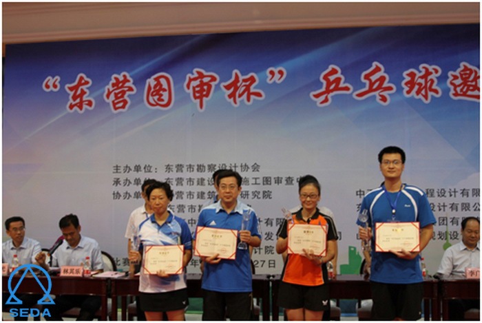 經(jīng)過一天半激烈的比賽,山東省建筑設(shè)計研究院、德州市勘察設(shè)計協(xié)會、濟南市勘察設(shè)計協(xié)會(東營市勘察設(shè)計協(xié)會并列第三名)分列團體前三名;濟南市勘察設(shè)計協(xié)會劉穎申、臨沂市勘察設(shè)計協(xié)會杜亞楠分別榮獲男子和女子單打冠軍。