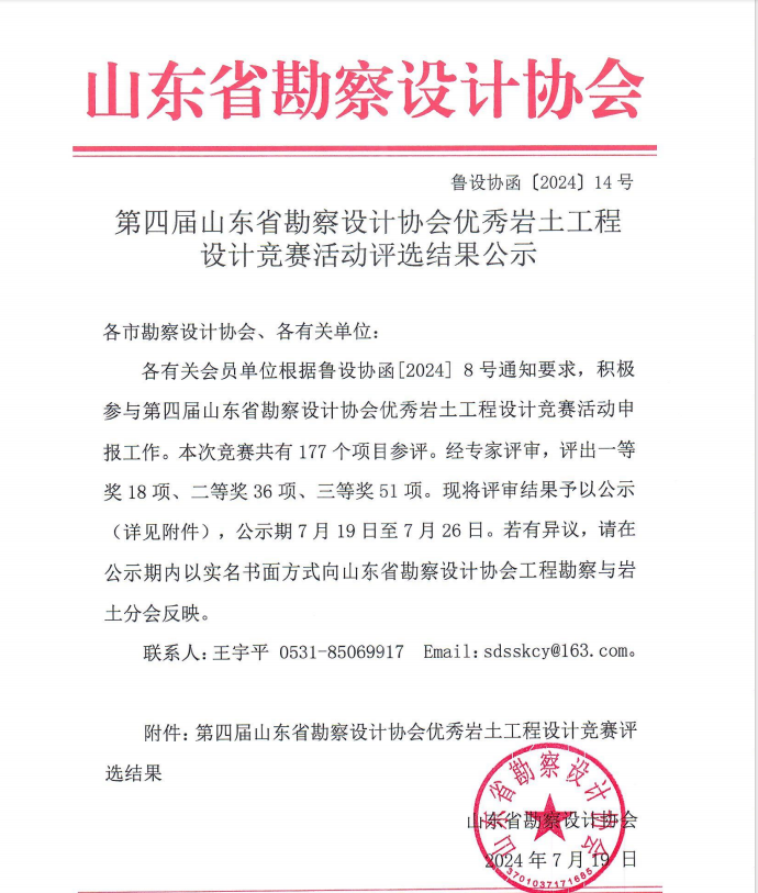 第四屆山東省勘察設(shè)計協(xié)會優(yōu)秀巖土工程設(shè)計競賽活動評選結(jié)果公示