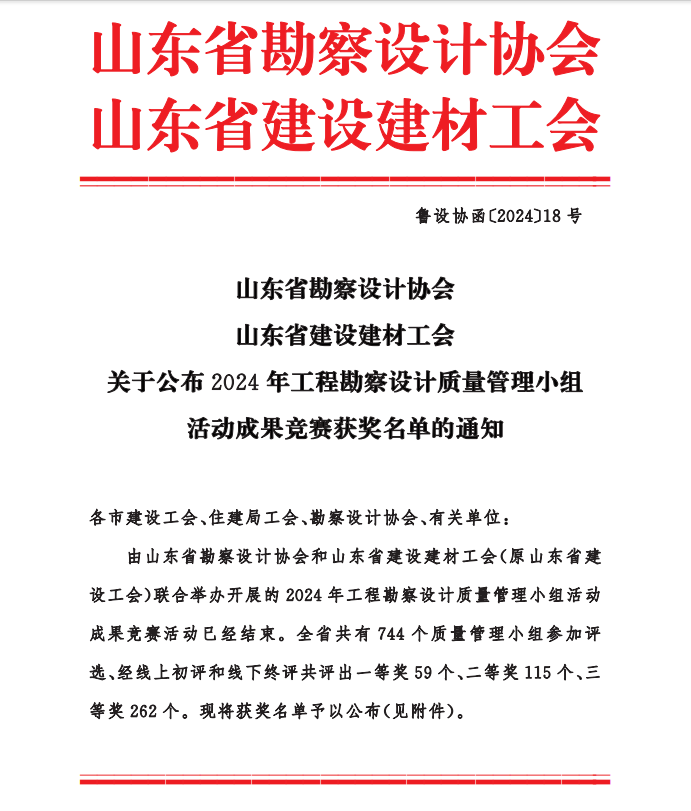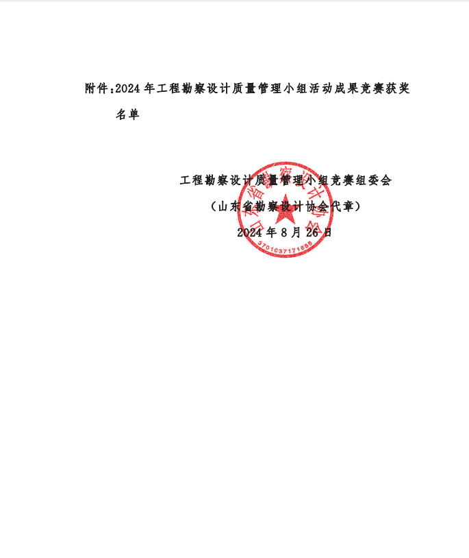 附件:關(guān)于公布2024年工程勘察設(shè)計(jì)質(zhì)量 管理小組活動(dòng)成果競(jìng)賽獲獎(jiǎng)名單的通知