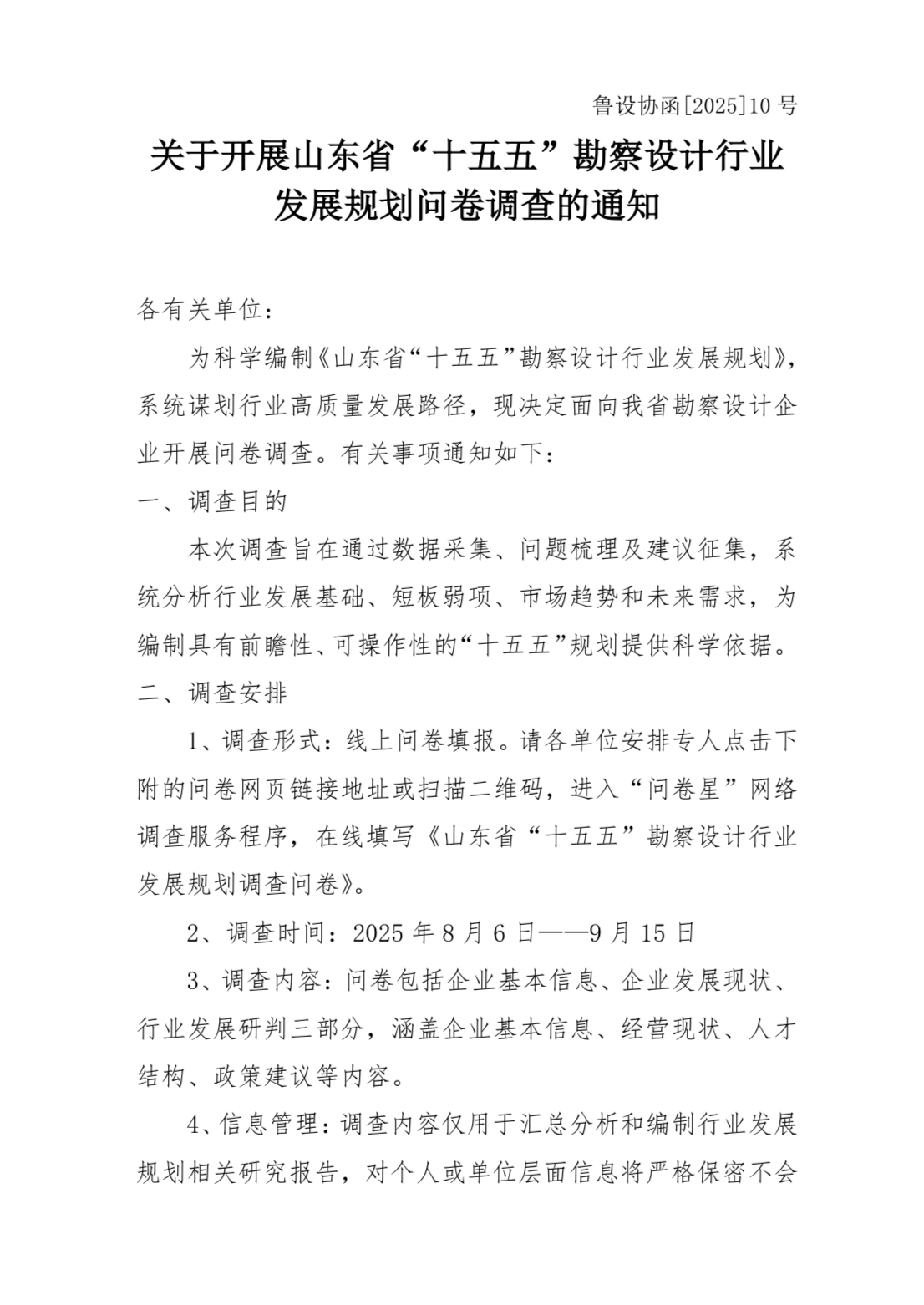 2.關(guān)于開展山東省“十五五”勘察設(shè)計(jì)行業(yè)發(fā)展規(guī)劃問卷調(diào)查的通知